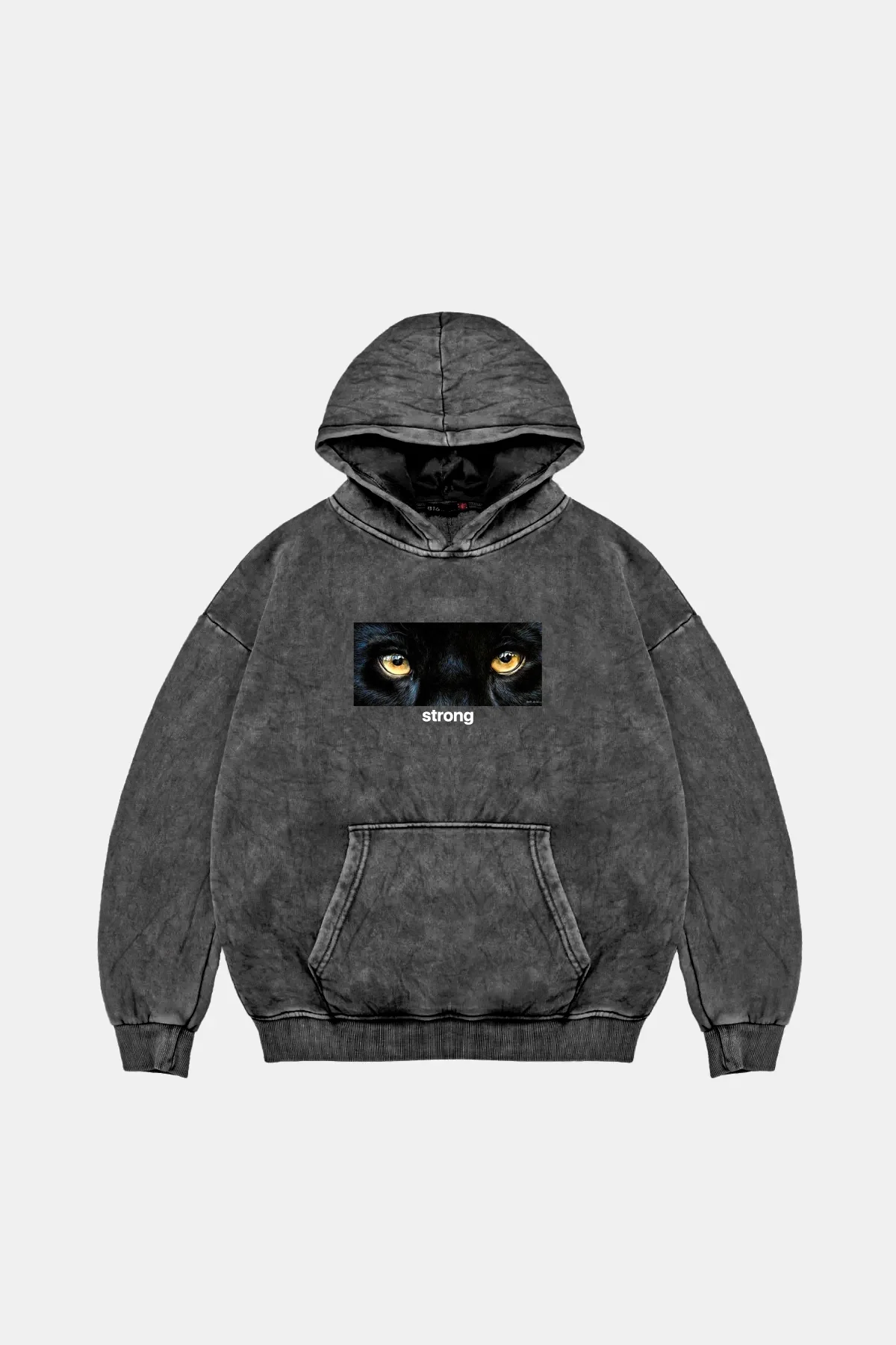 STRONG BASKILI OVERSİZE UNİSEX PREMİUM YIKAMALI SİYAH HOODİE