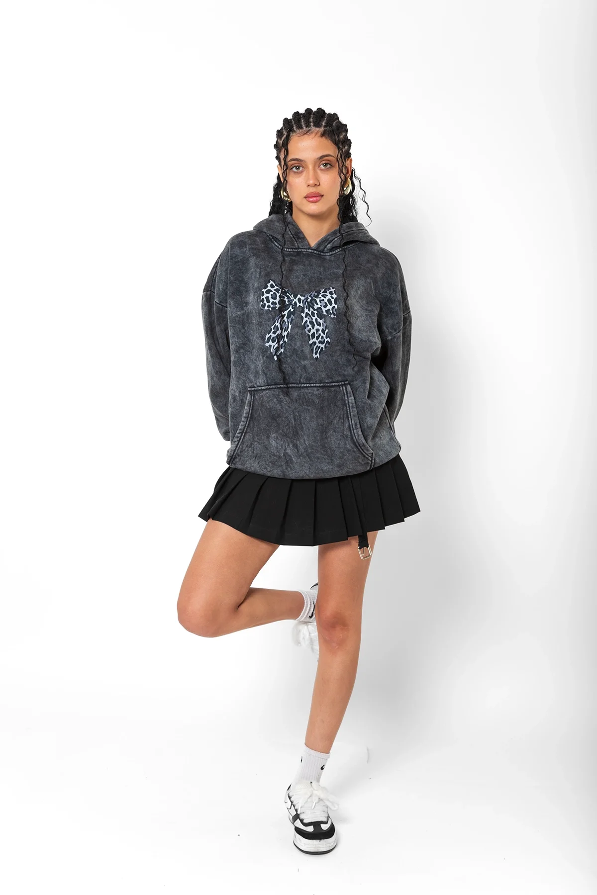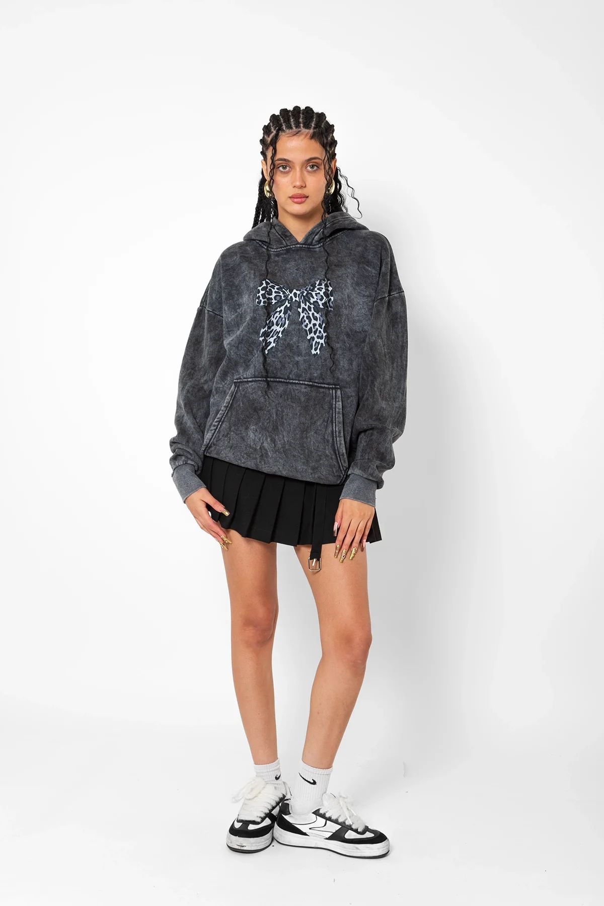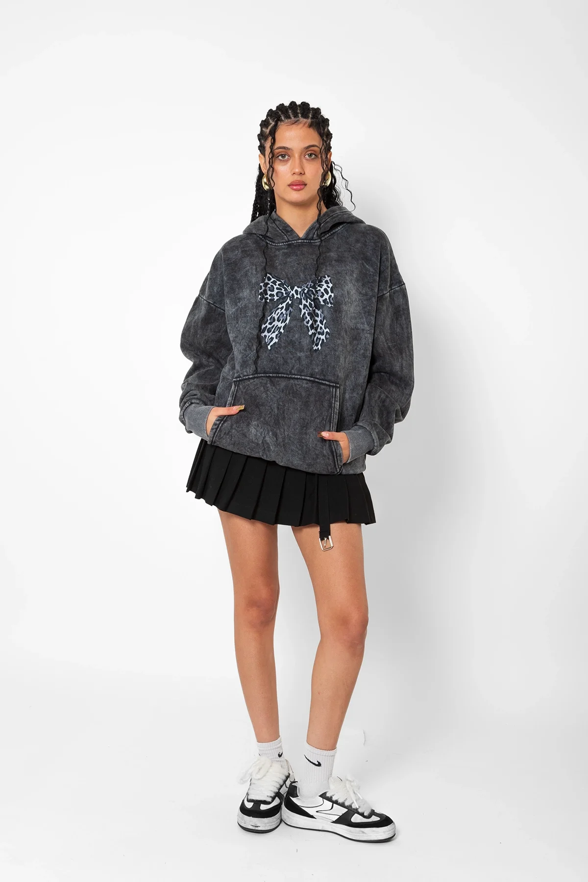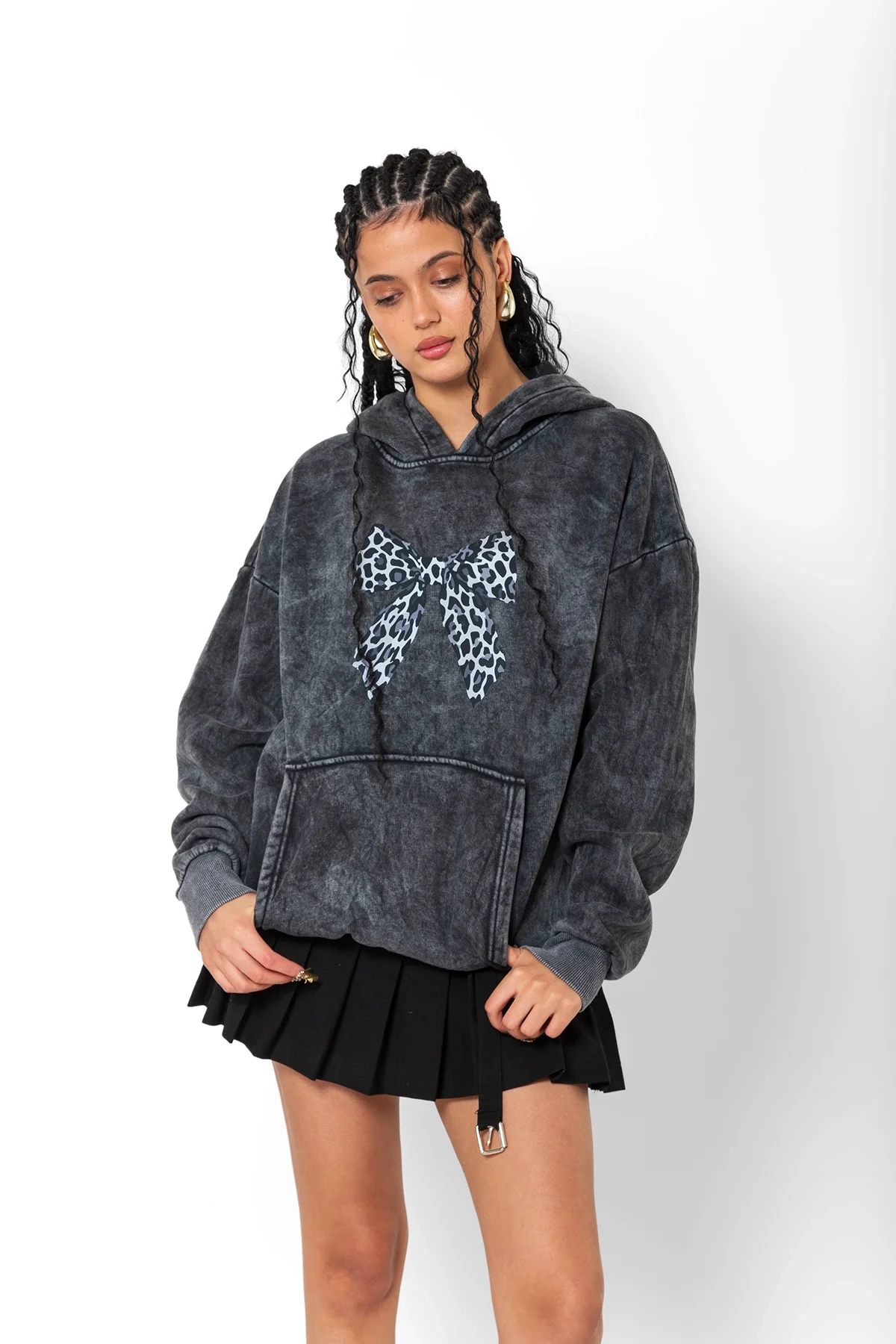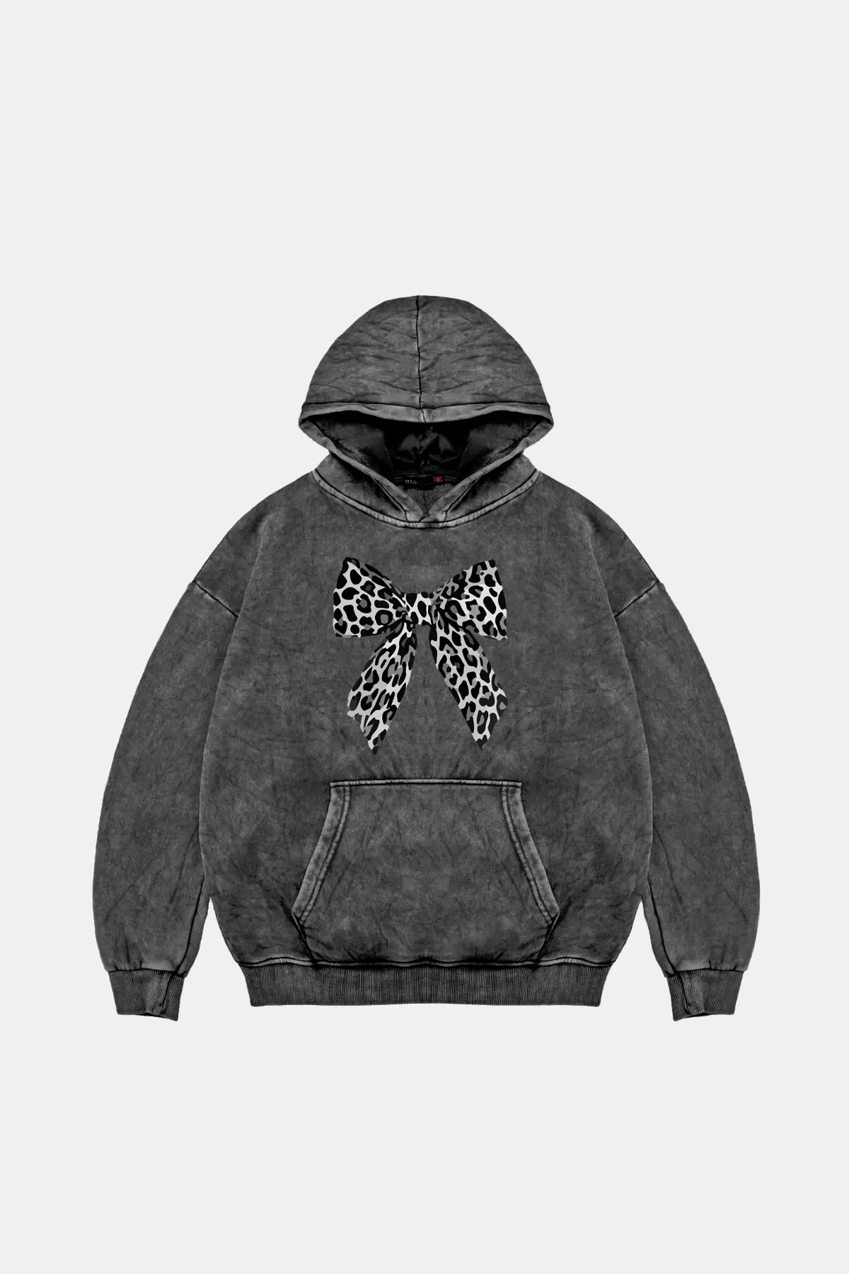 V2 FİYONK LEOPAR BASKILI OVERSİZE UNİSEX PREMİUM YIKAMALI SİYAH HOODİE