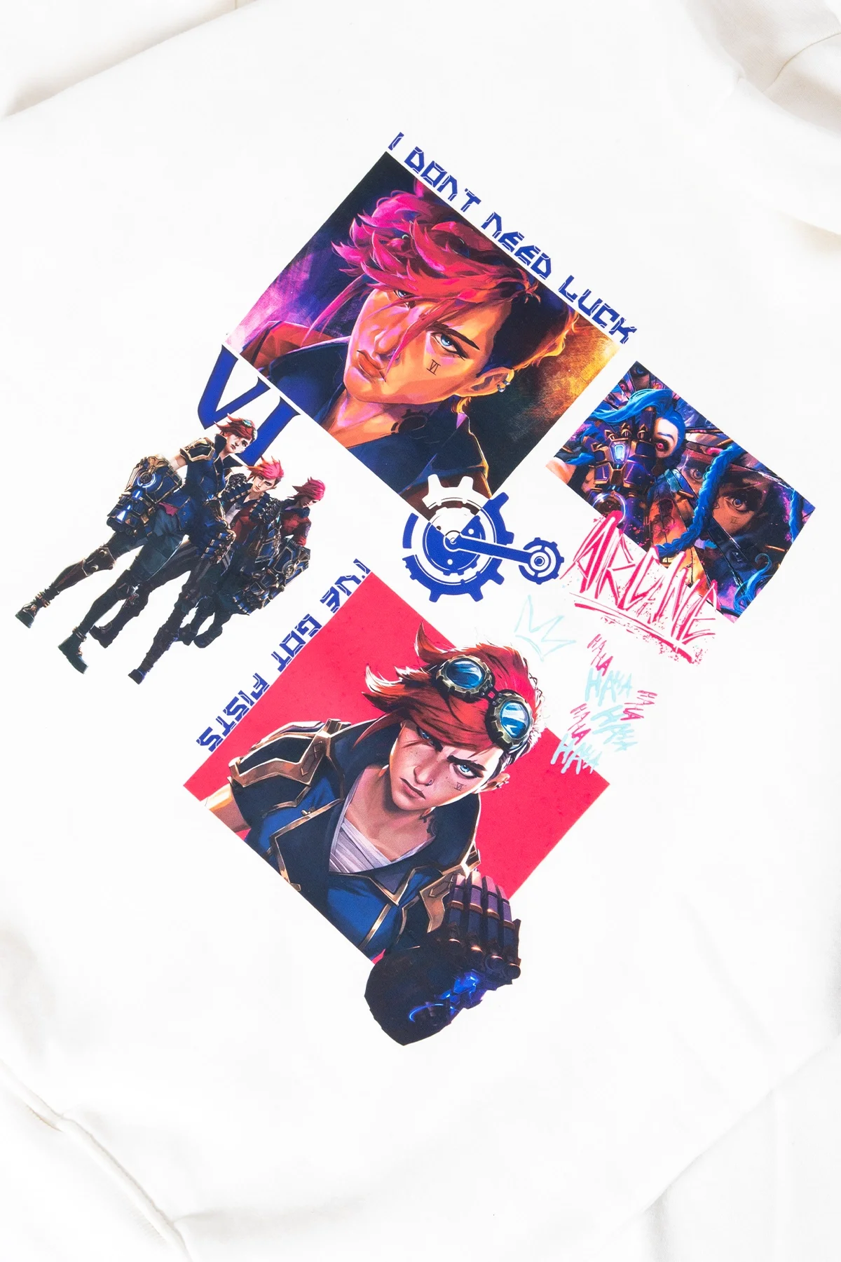 VI ARCANE BASKILI OVERSİZE UNİSEX BEYAZ HOODİE