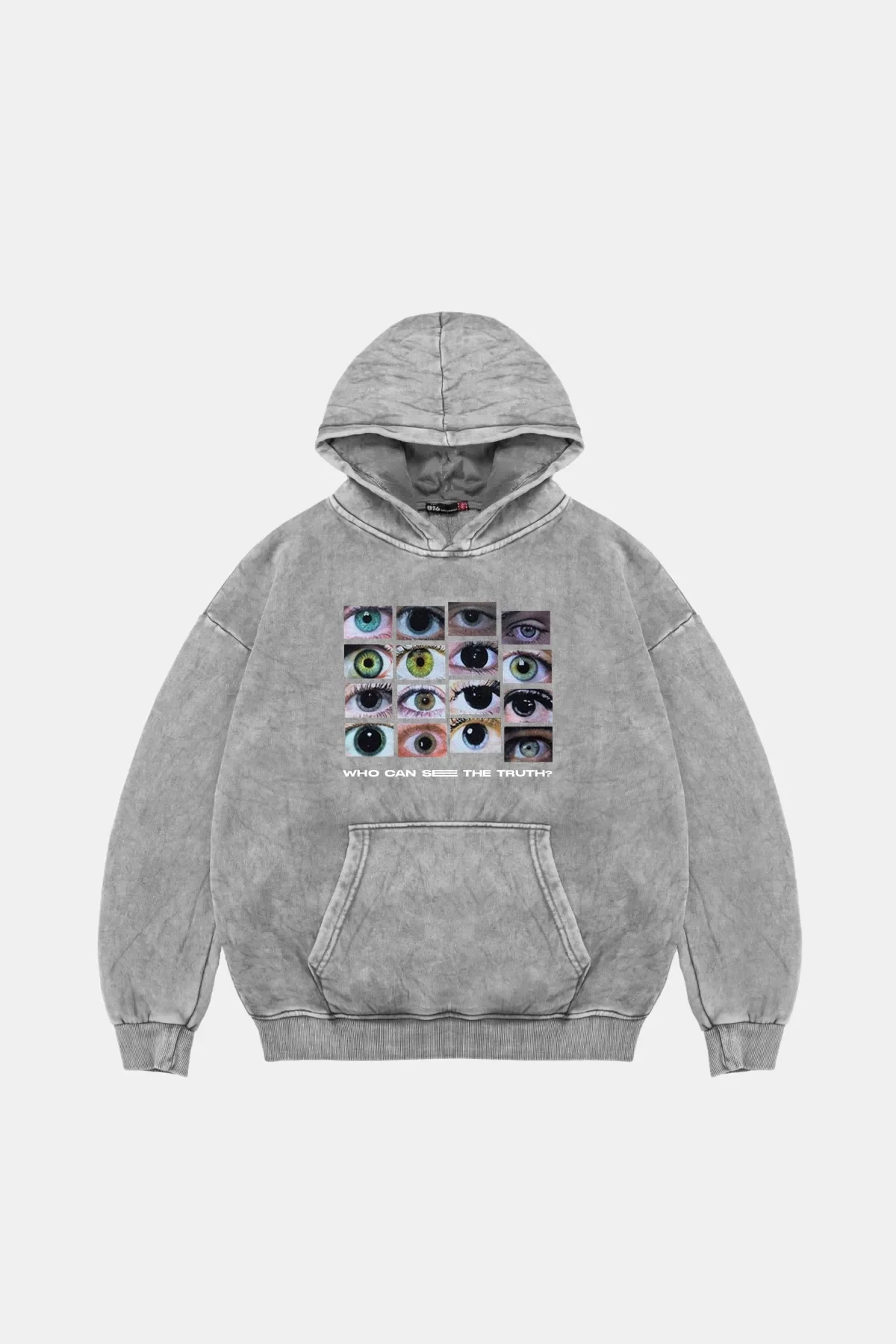 Eye Of Horus Baskılı Oversize Unisex Yıkamalı Beyaz Hoodie