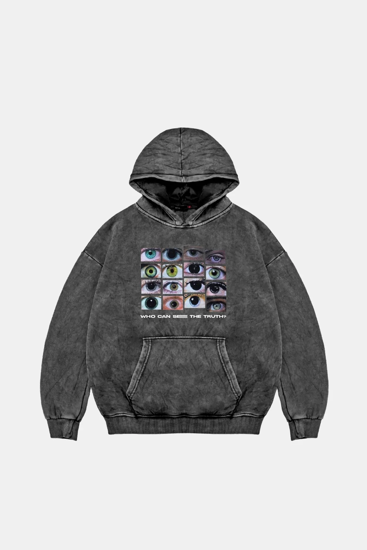 Eye Of Horus Baskılı Oversize Unisex Yıkamalı Siyah Hoodie