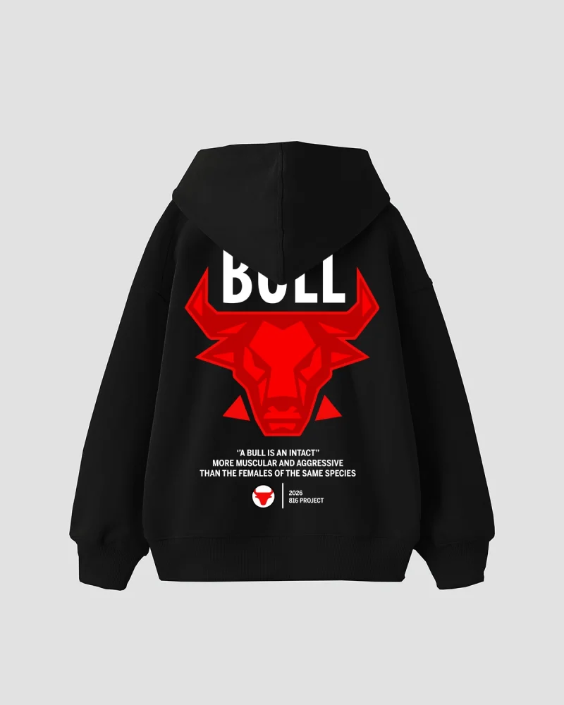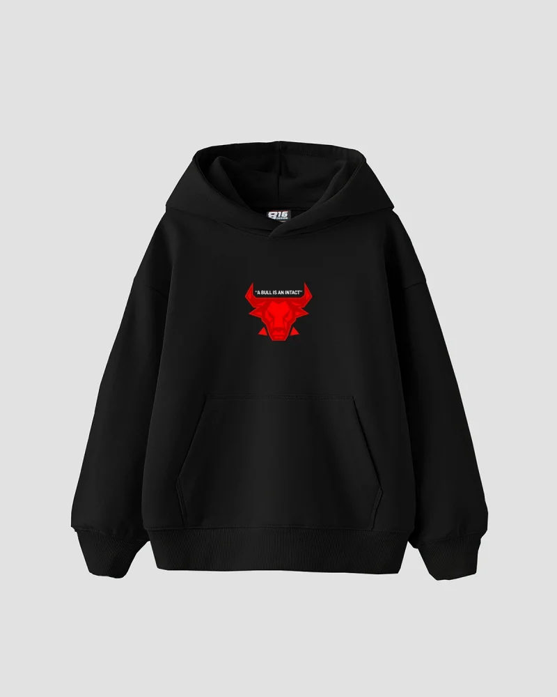 Bull Is an Intact Baskılı Oversize Unisex Siyah Hoodie