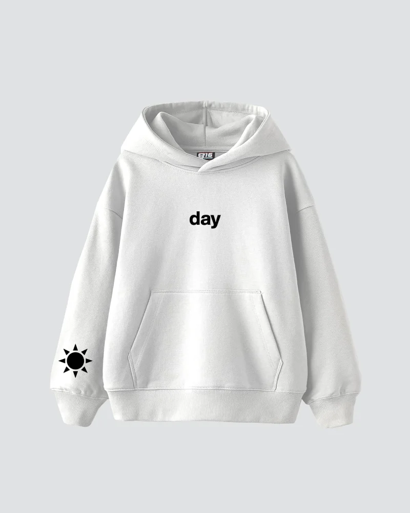 Night Day Baskılı Oversize Unisex Beyaz Hoodie