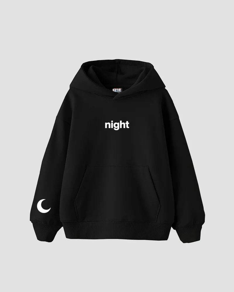 Night Day Baskılı Oversize Unisex Siyah Hoodie