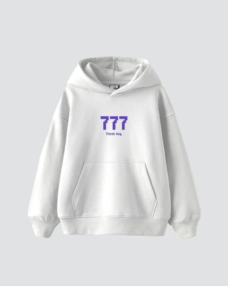 Think Big Baskılı Oversize Unisex Beyaz Hoodie