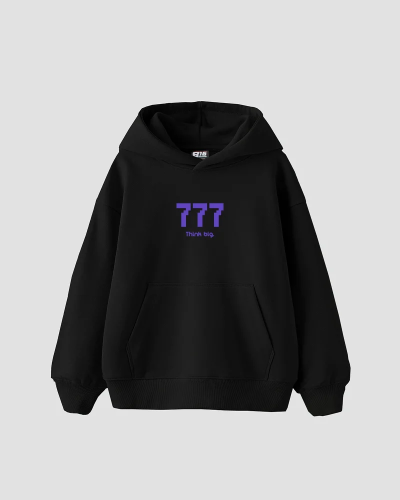 Think Big Baskılı Oversize Unisex Siyah Hoodie