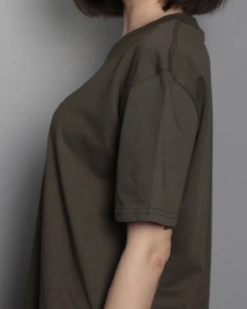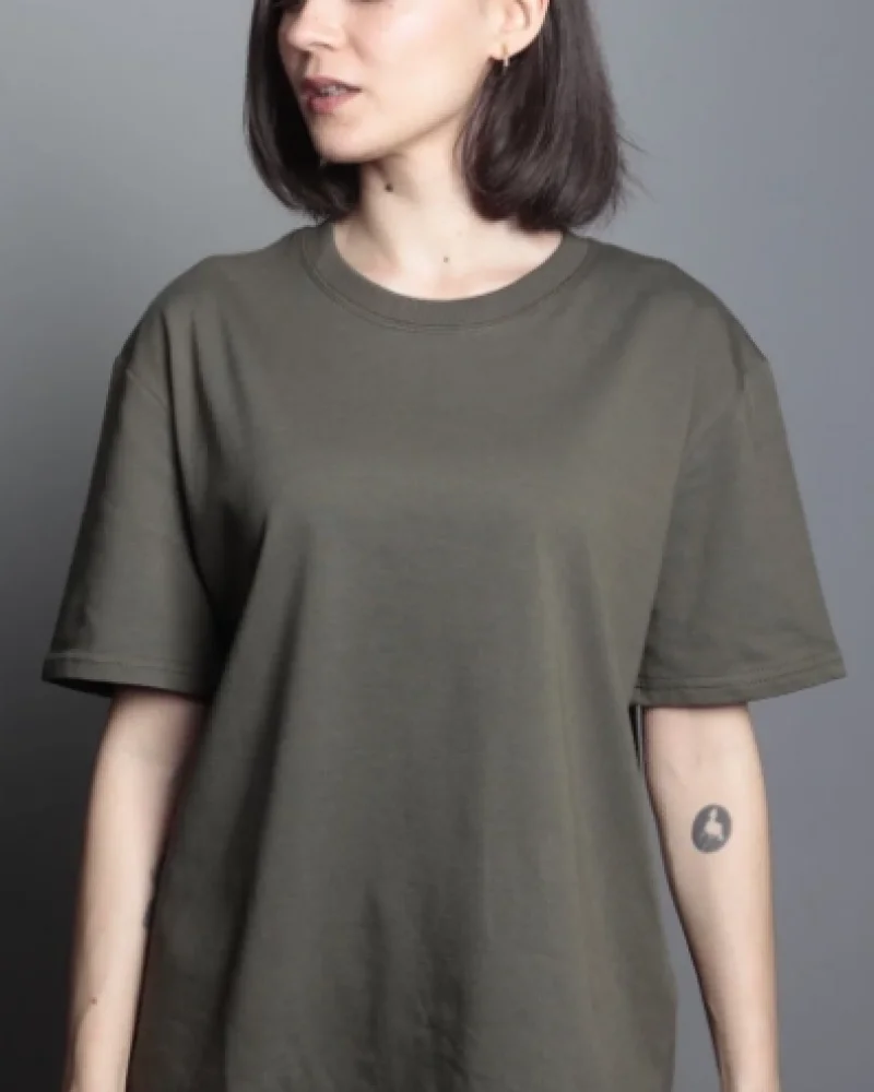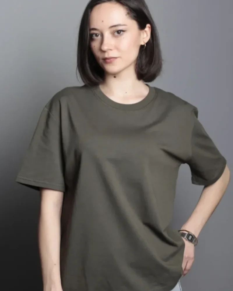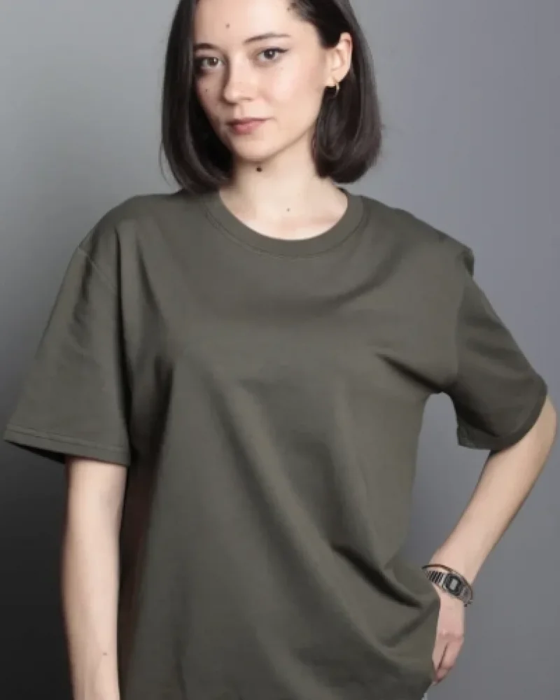 Bisiklet Yaka Pamuklu Basic Haki T-shirt