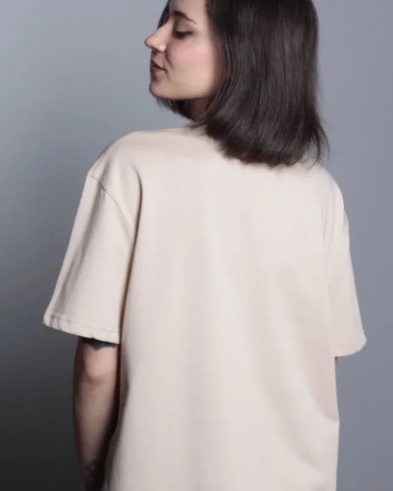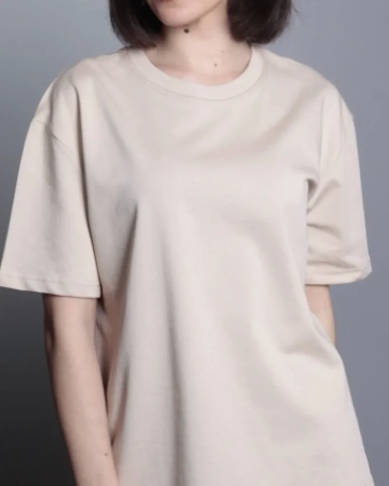 Bisiklet Yaka Pamuklu Bej T-shirt