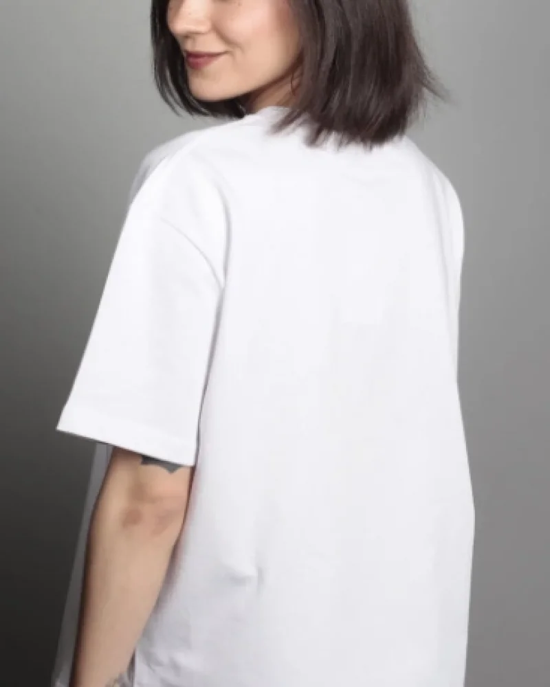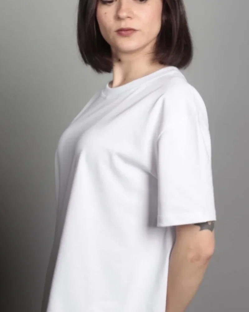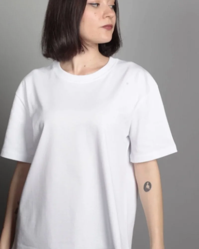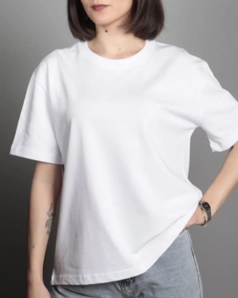 Bisiklet Yaka Pamuklu Beyaz T-shirt