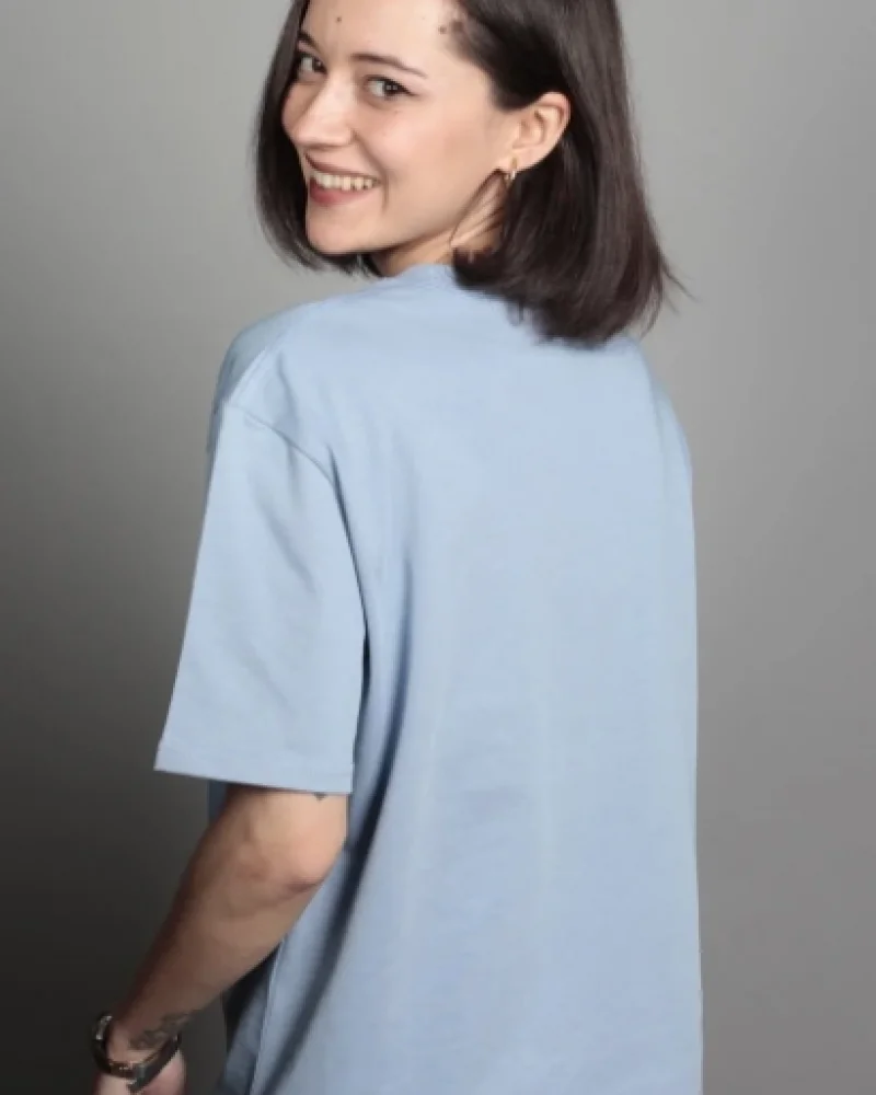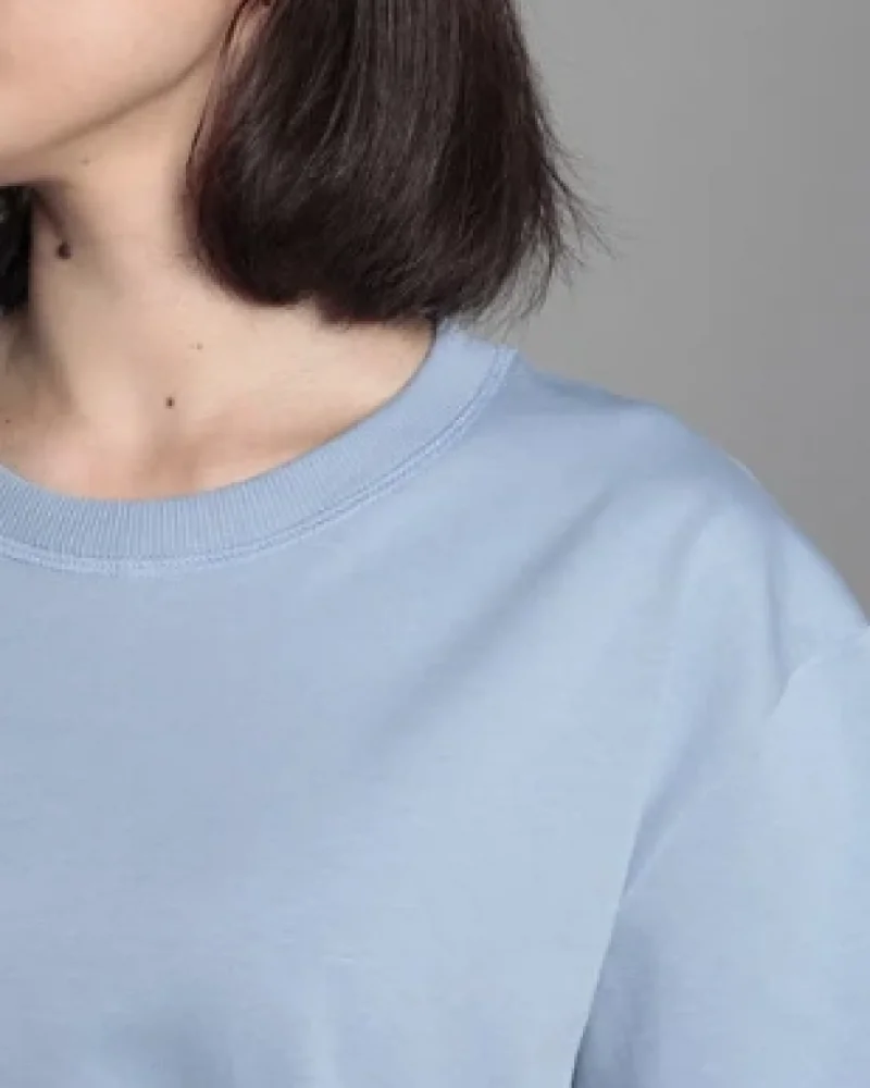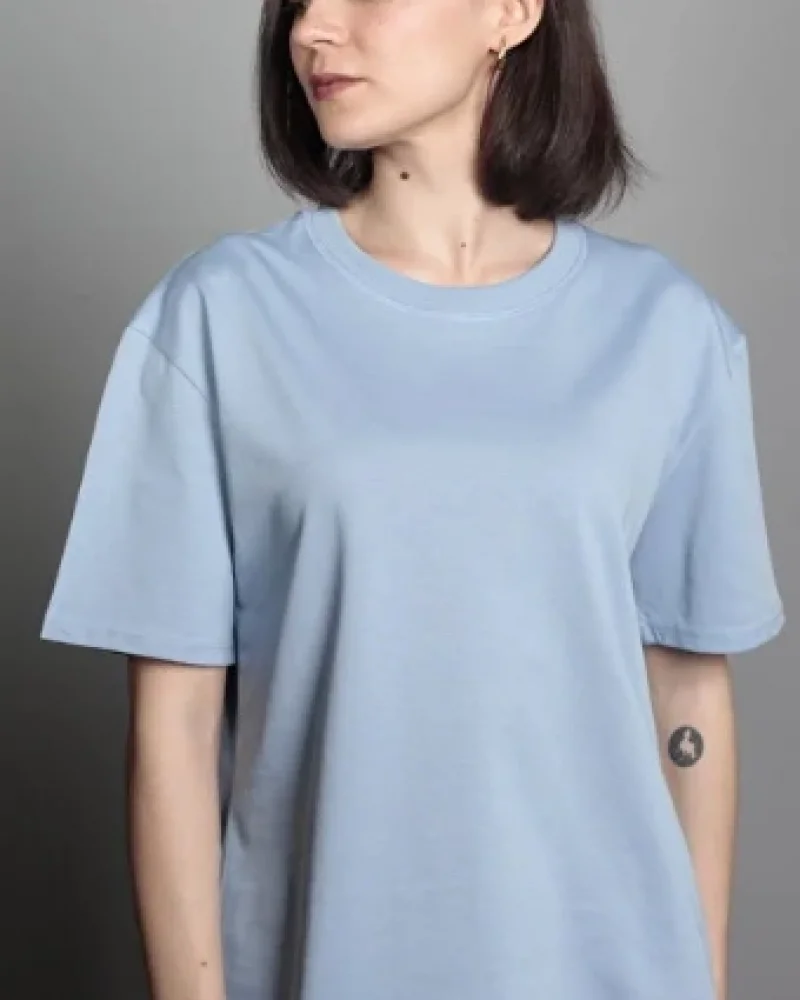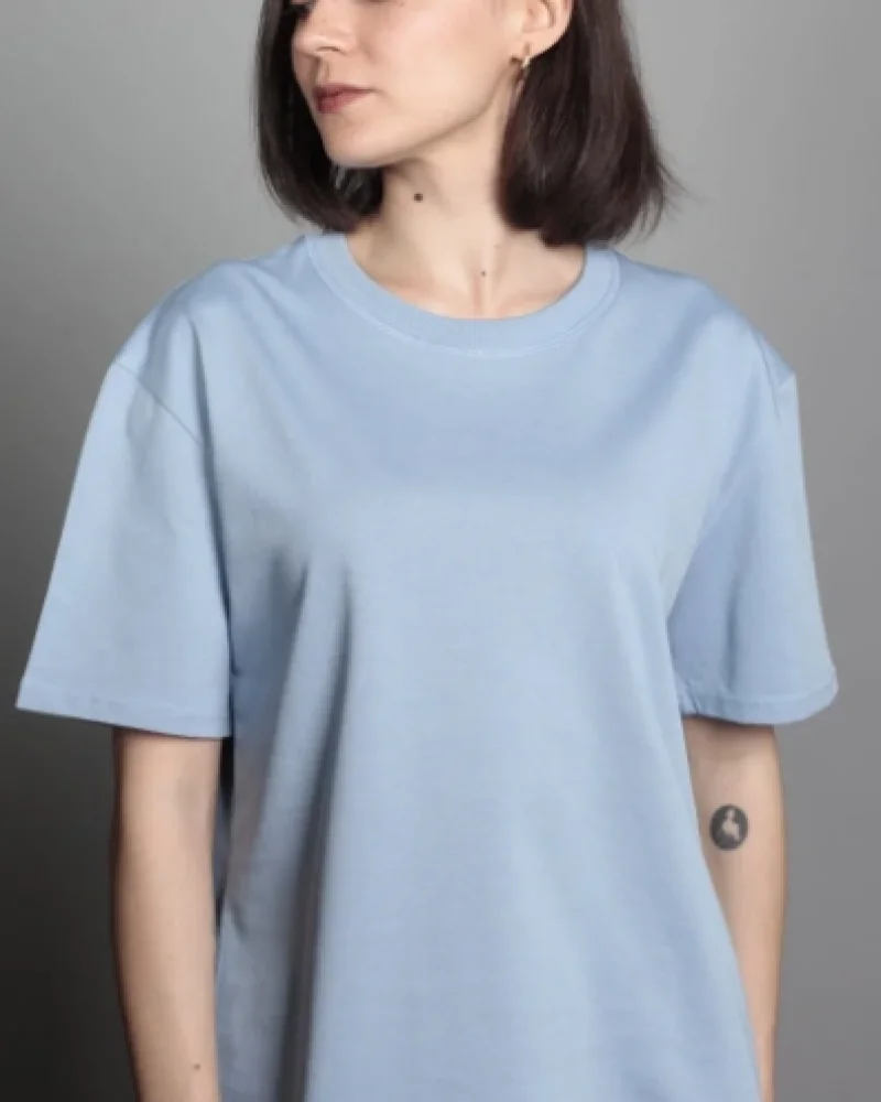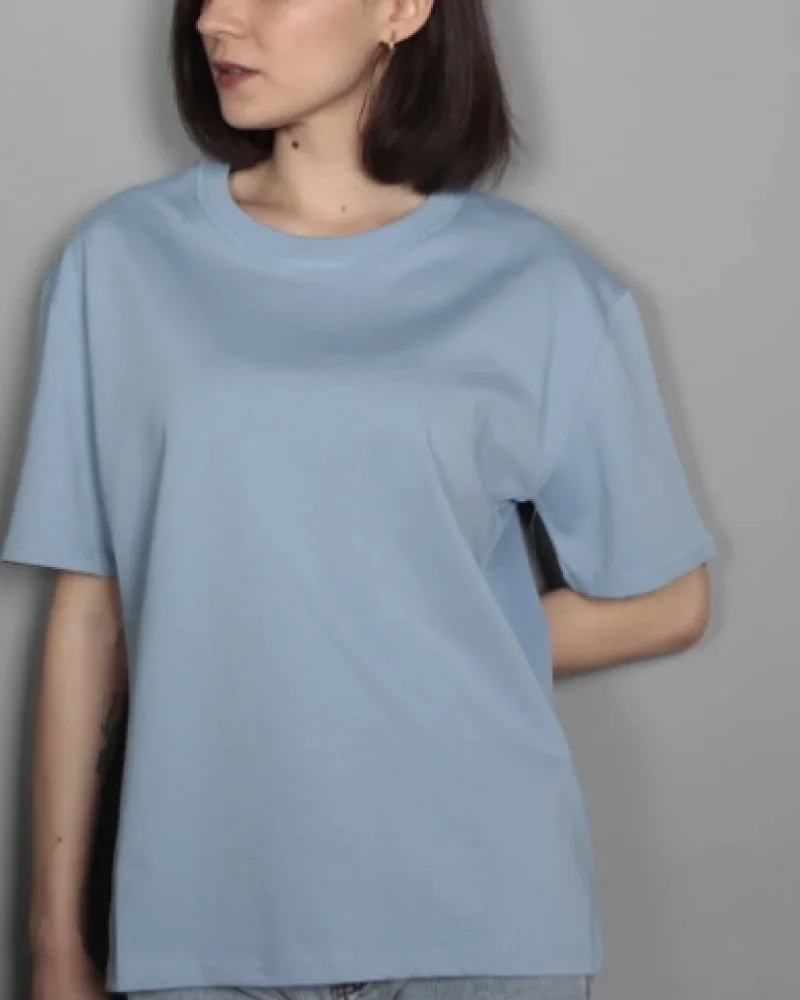 Bisiklet Yaka Pamuklu Mavi T-shirt