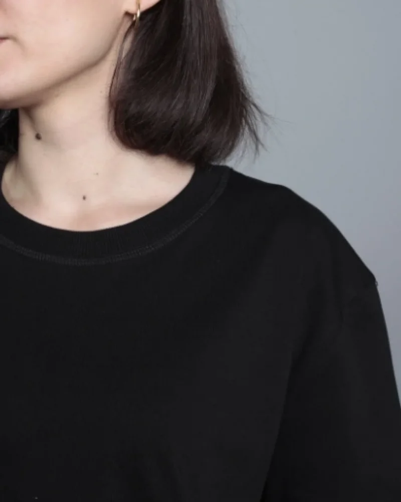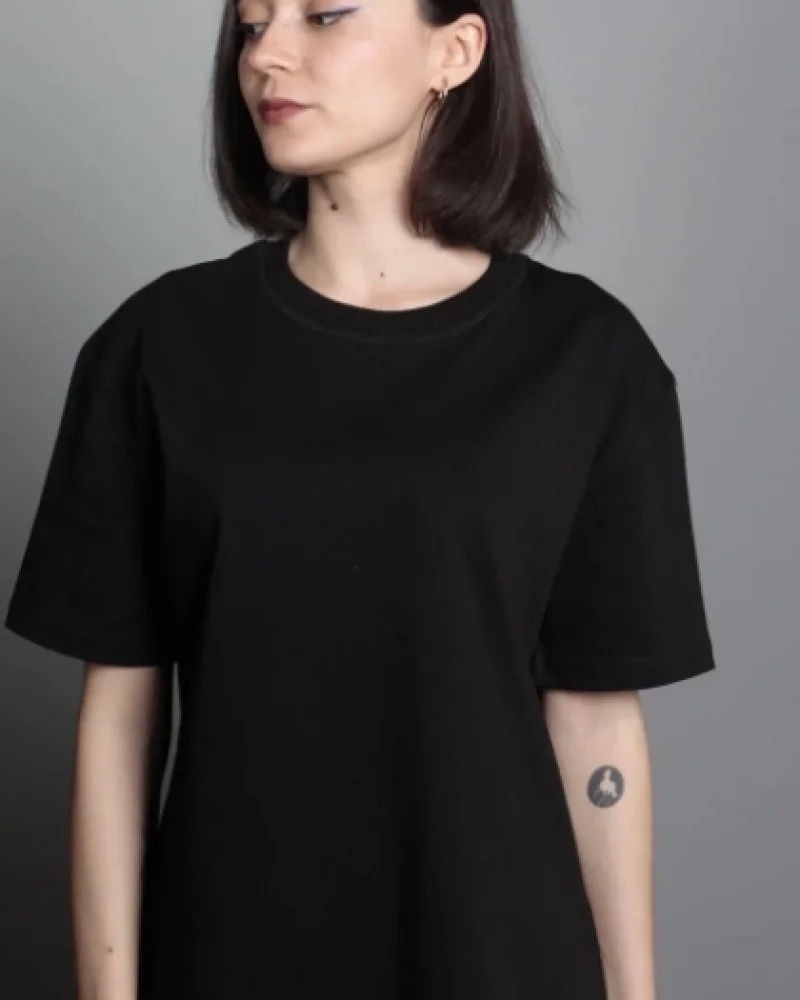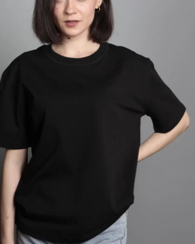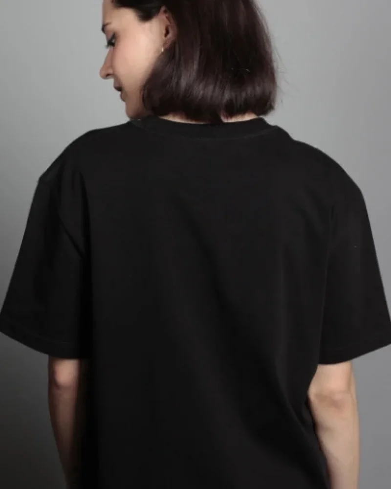 Bisiklet Yaka Pamuklu Siyah T-shirt