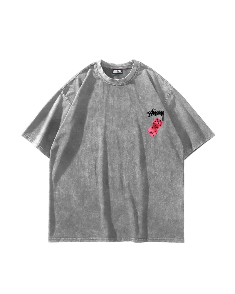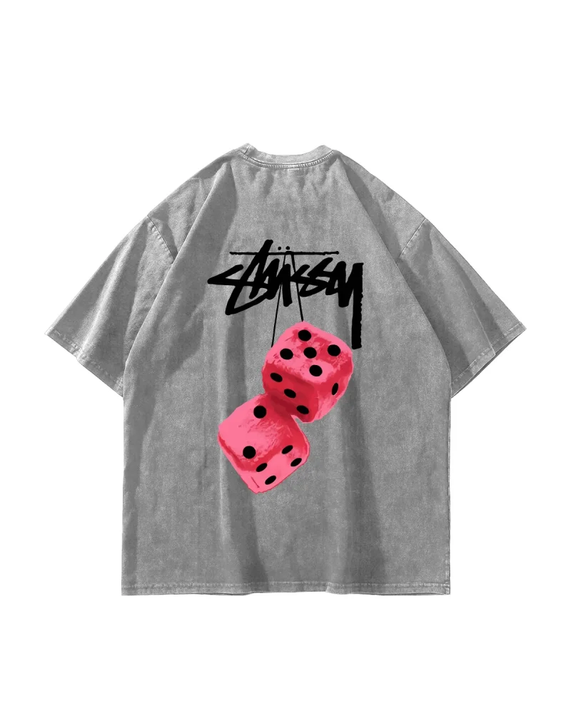 Sts. Dice Sırt Baskılı Oversize Unisex Yıkamalı Siyah Tshirt