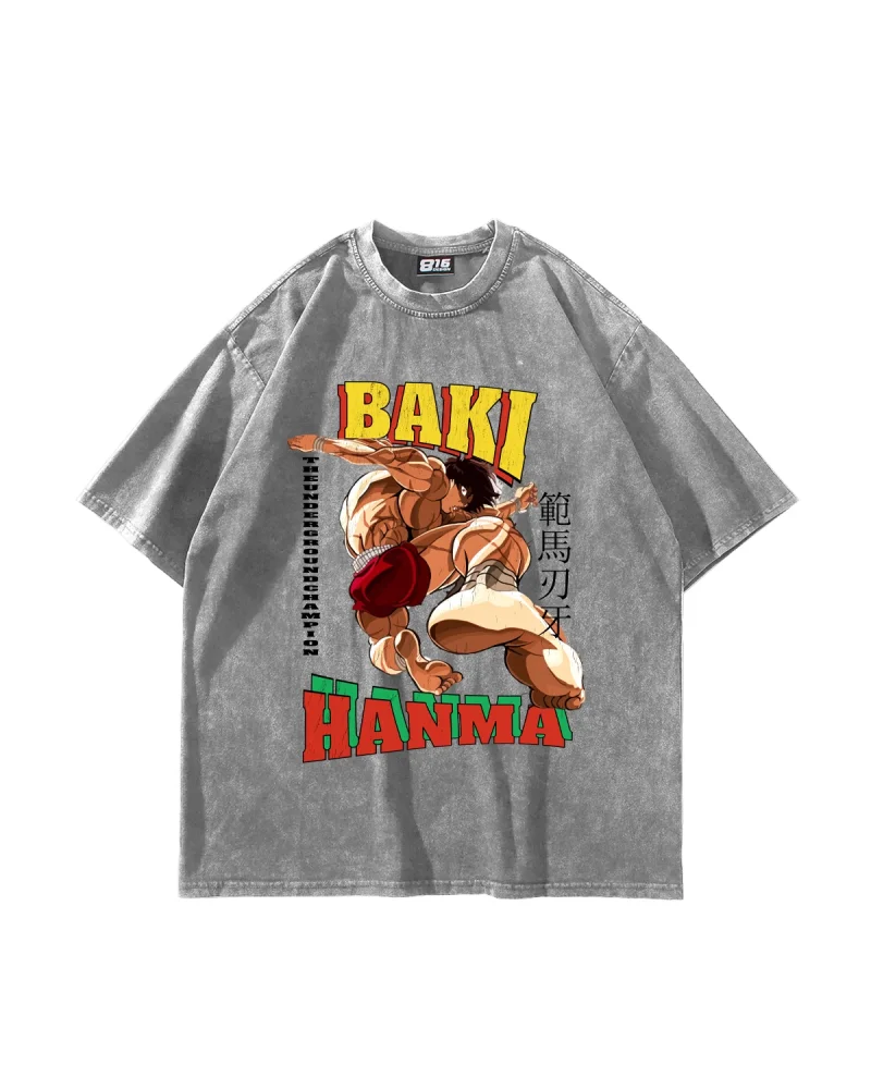 Baki Hanma Baskılı Oversize Unisex Yıkamalı Siyah Tshirt