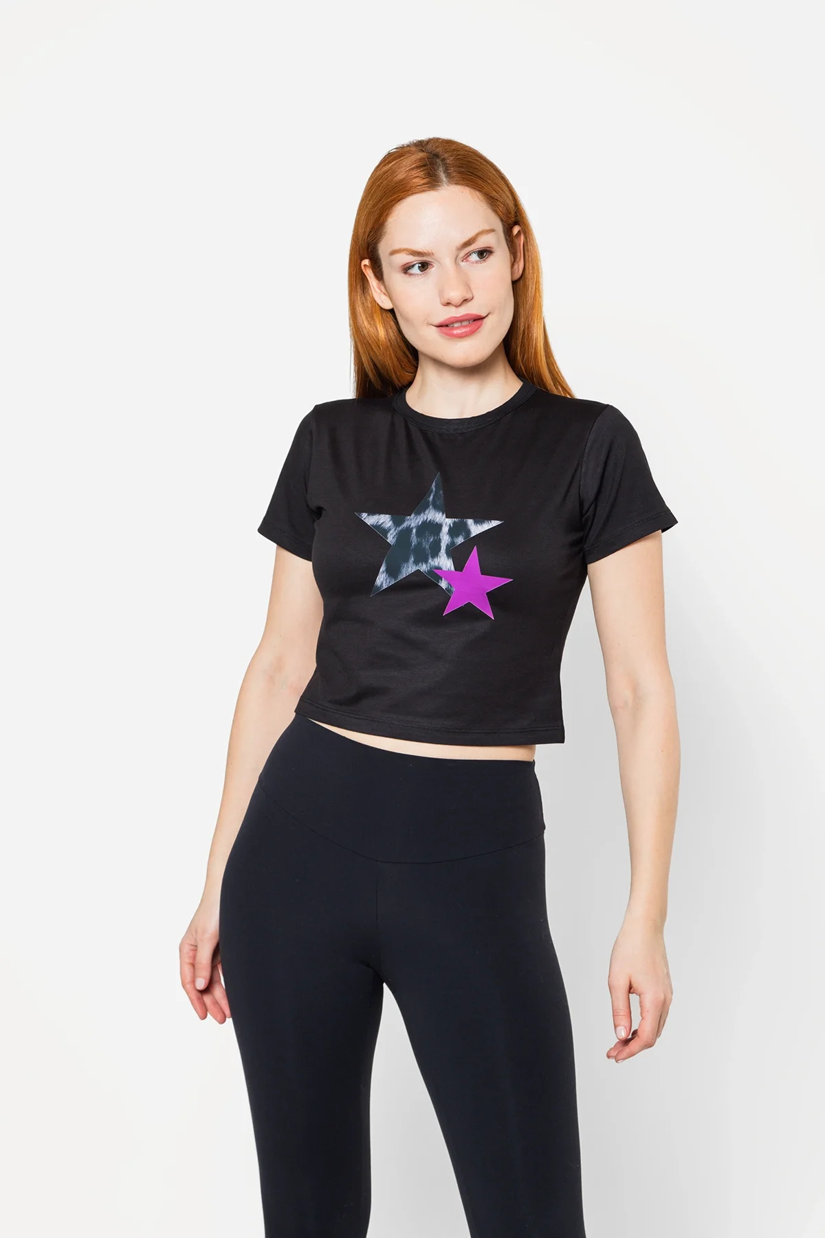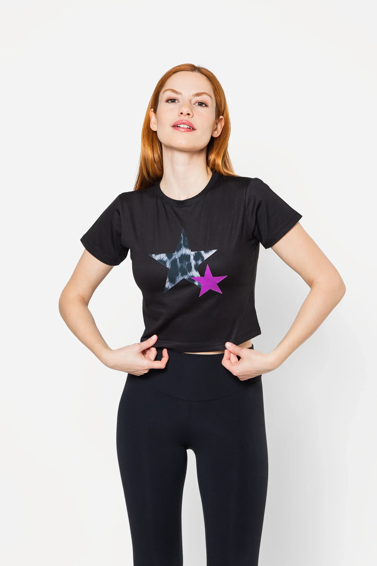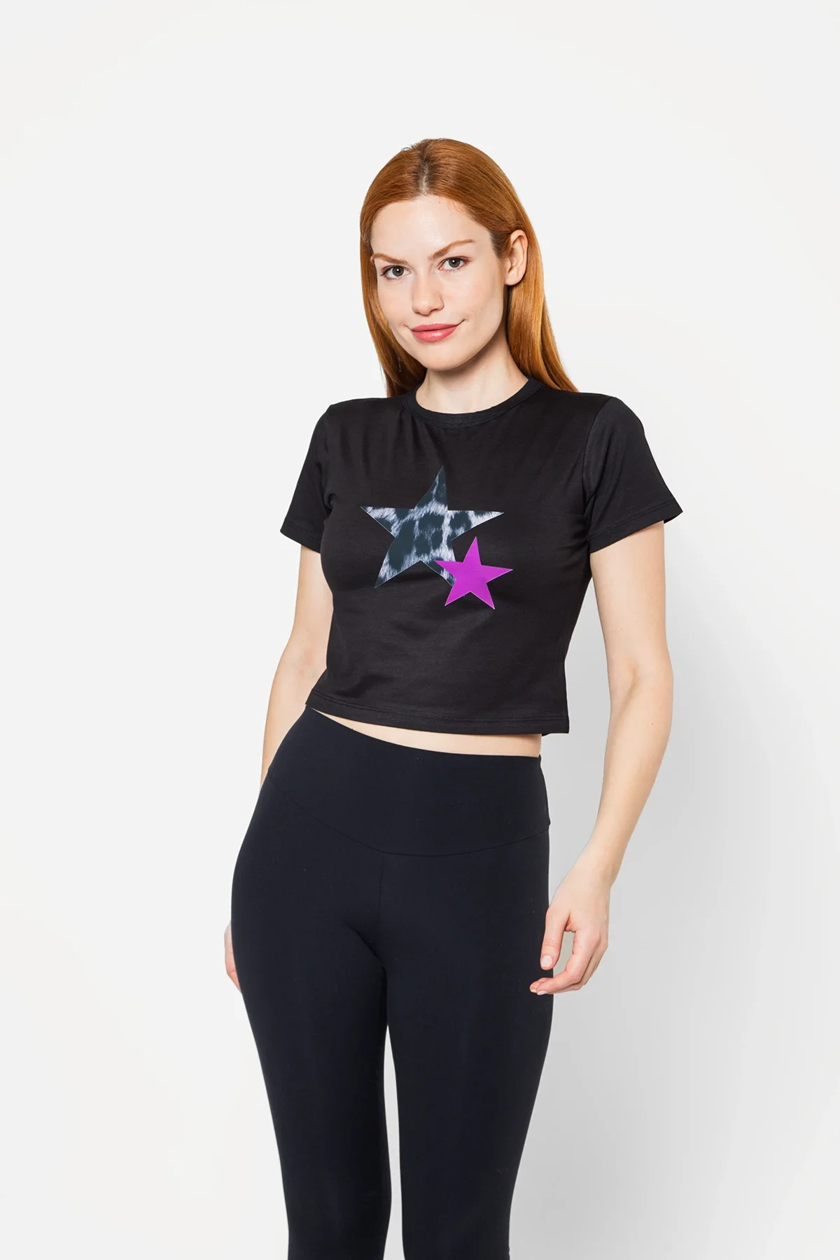 Y2K LEOPAR STARZ "V2" BASKILI SİYAH CROP TOP