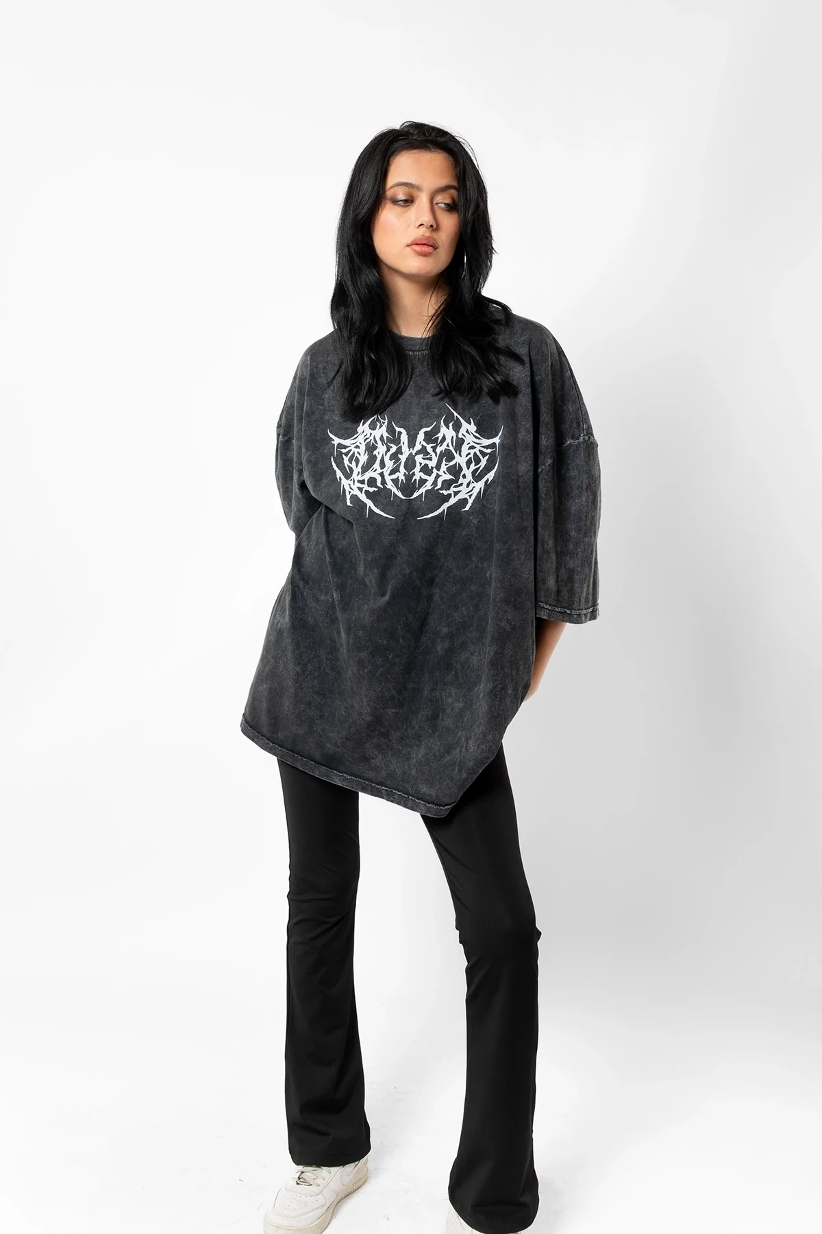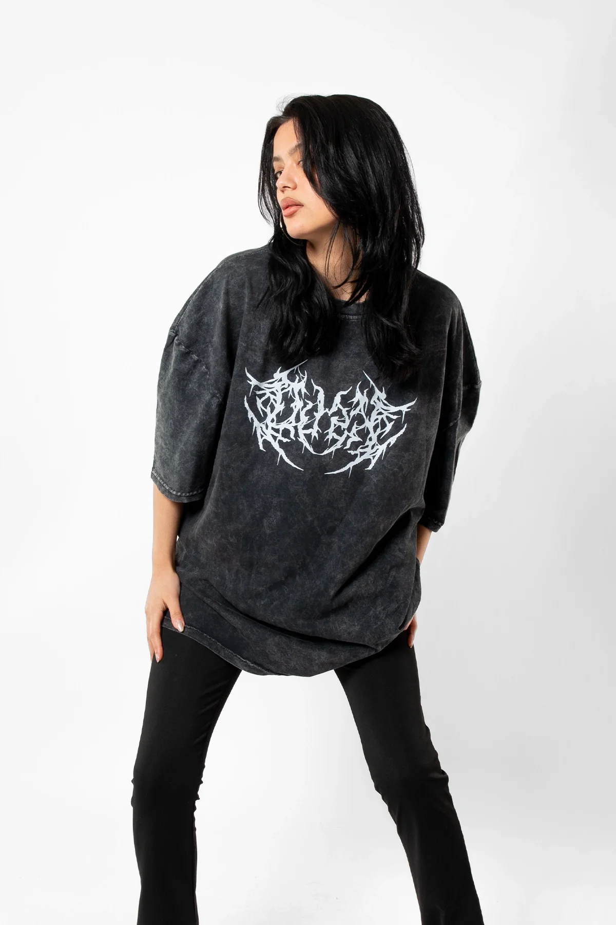 YIKAMALI SİYAH DUSK BASKILI OVERSİZE UNİSEX TSHİRT