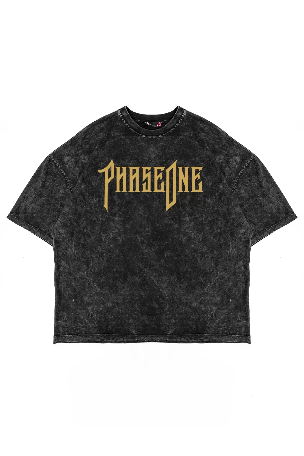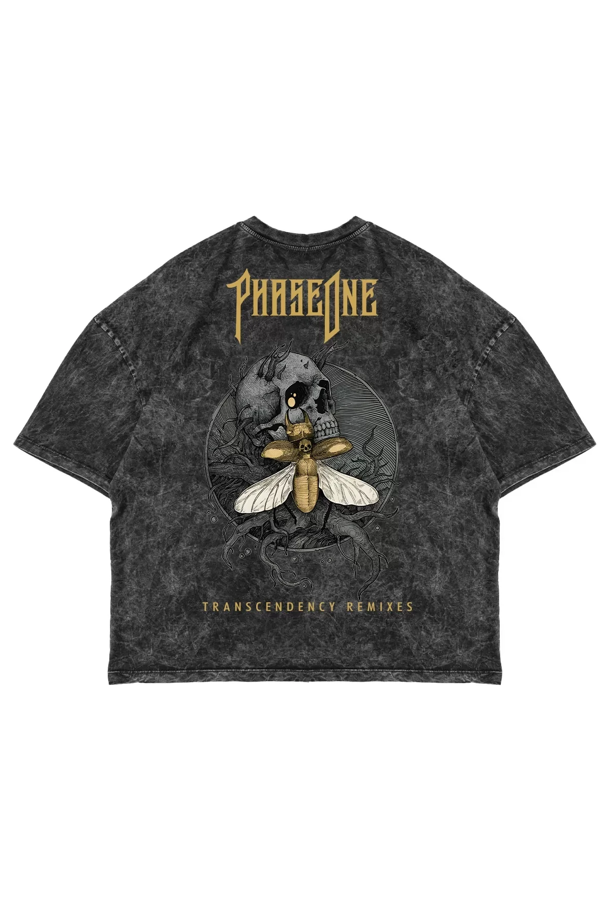 YIKAMALI SİYAH PHASEONE SIRT BASKILI UNİSEX OVERSİZE TSHİRT